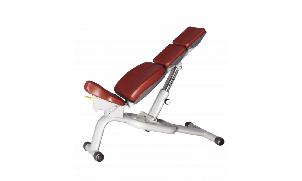 Регулируемая скамья с профилем основной станины 60*120*2.5 мм. для полноценного коммерческого использования. Сидение регулируется в диапазоне от -50 до 15 градусов, спинка сидения - от 0 до 90 градусов.