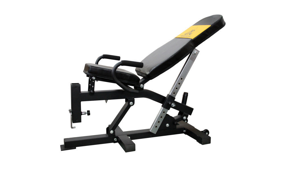 На скамье имеются удобные ручки. Скамья изготовлена из высокопрочной стали, профиль размером 60х60 мм и толщиной 2 мм. Для перемещения тренажера есть 2 ролика.